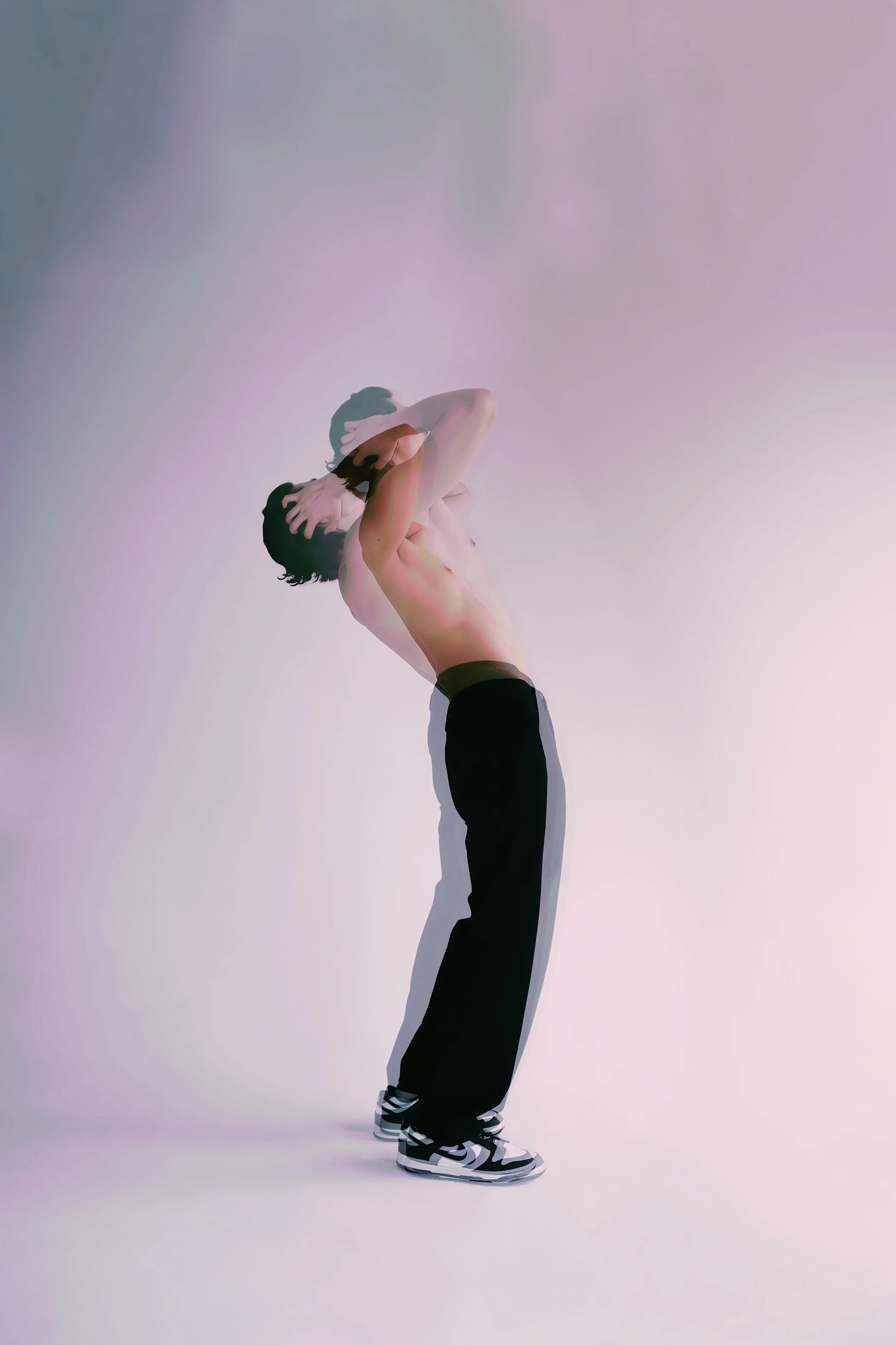 Inspired by the unseeable touch of space, and the wonders of creation within a bond, space witho(U)t, examines the manifestation of the physical, emotional and spiritual connection between individuals within the exterior realm whilst simultaneously investigating the duality of the lone journey. A development of abstract ideas correlated to the internal and external scopes of human existence driven by the concept of time, body and space–is the central theme that reflects this duet.